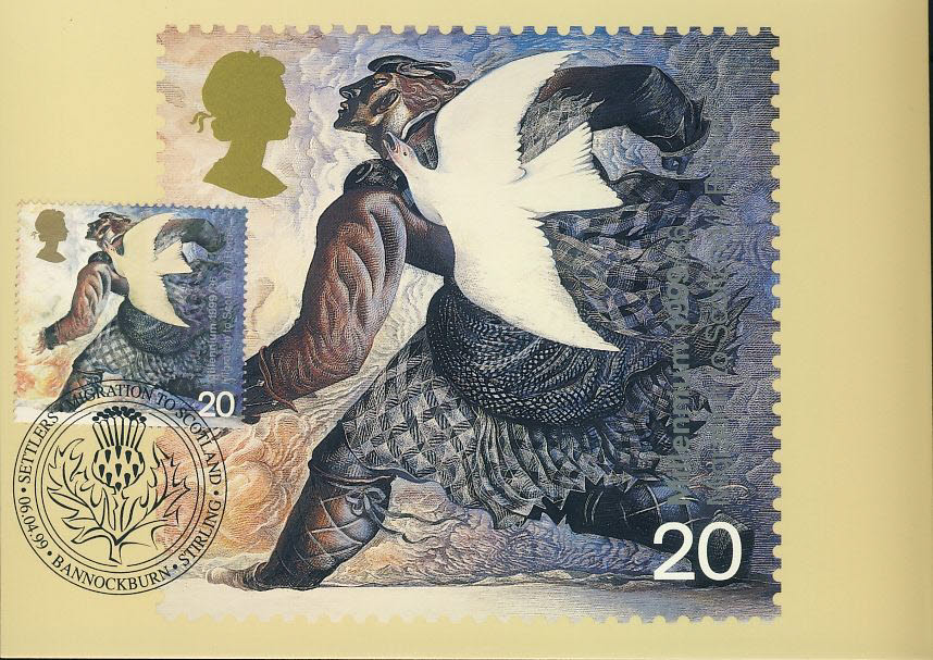 SCOTLAND Bannockburn Postcard MIGRATION Settlers special hand stamp postmark STIRLING refE123