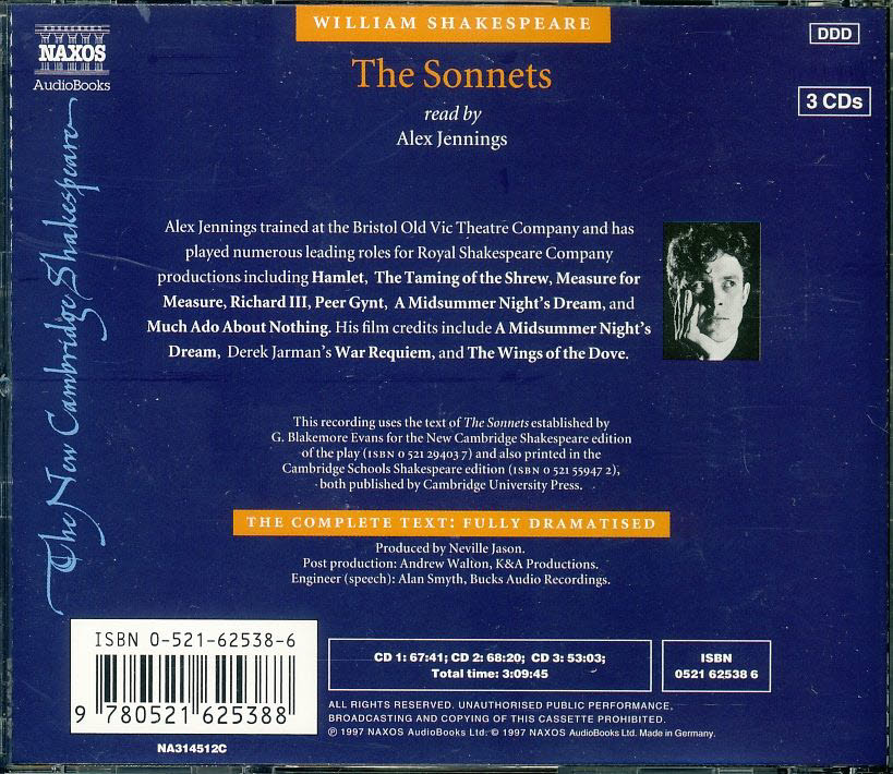 SHAKESPEARE The Sonnets ready by Alex Jennings Audio Book 3 CDs NA314512C refS4 (1)