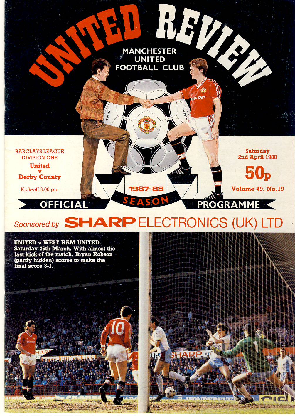 SIGNED Manchester United v Derby County 2nd April 1988 Football Programme ref101808
