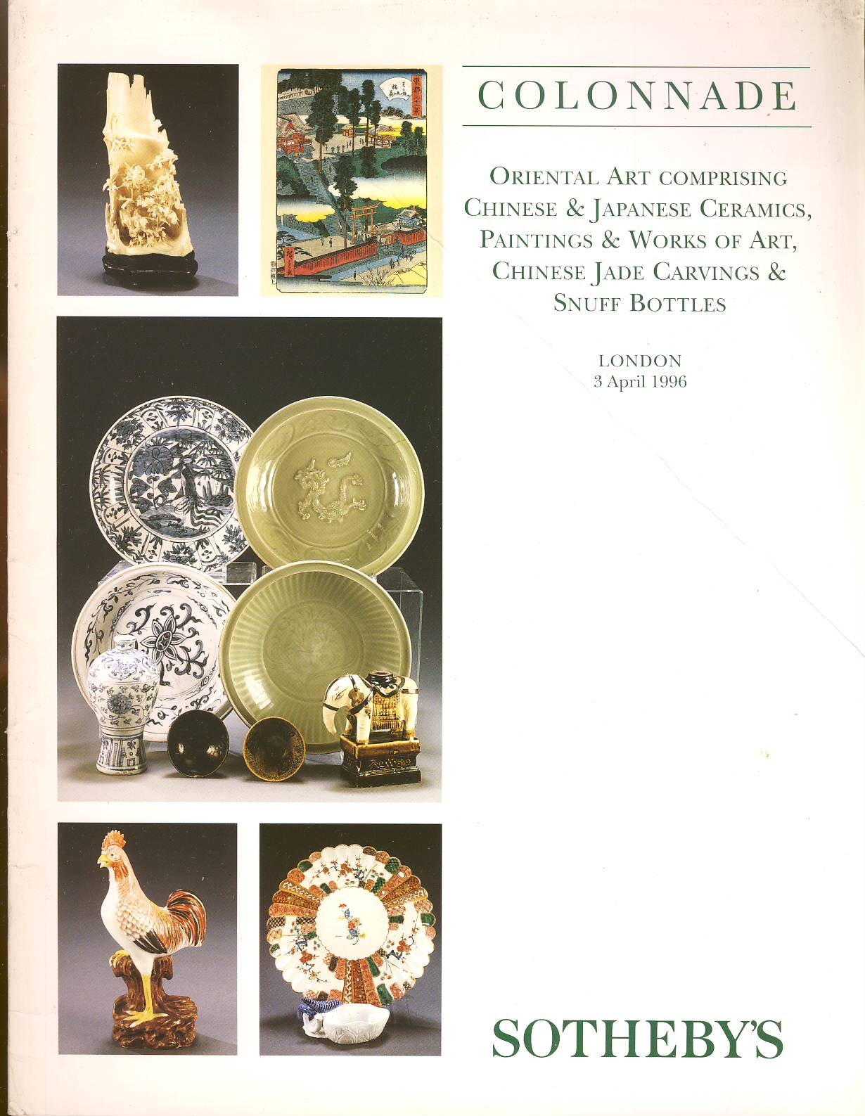 SOTHEBY’S Colonnade Oriental Auction Catalogue LONDON 1996 ref1-25 Good used condition. Crease to front and back covers.
