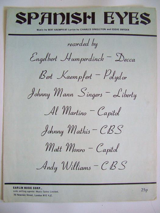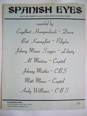 Spanish Eyes songsheet by Kaempfert Singleton Snyder 1965 vintage sheet music