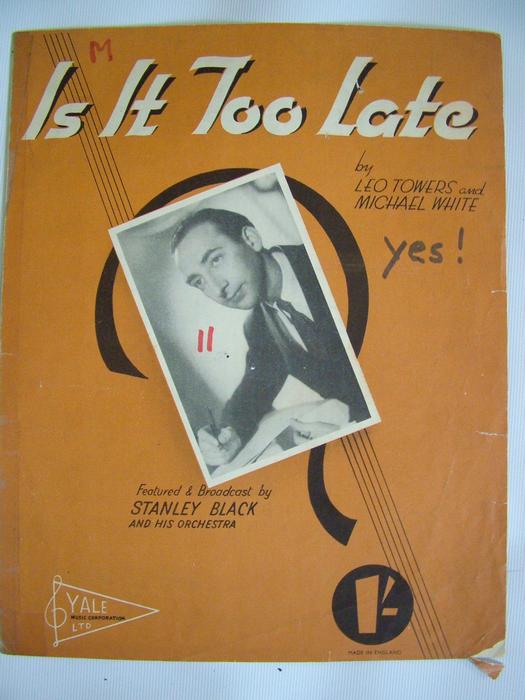 Stanley Black Is It Too Late by Leo Towers Michael White 1946 vintage sheetmusic