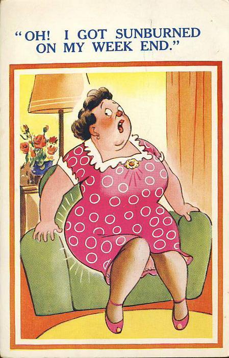 SUNBURNED LADY Vintage Sunshine Comic Postcard refB1Vintage Postcard. An original postcard in good condition for its age with some creases, corner bumps and scuffs. Please see large photos and description for details. refB2