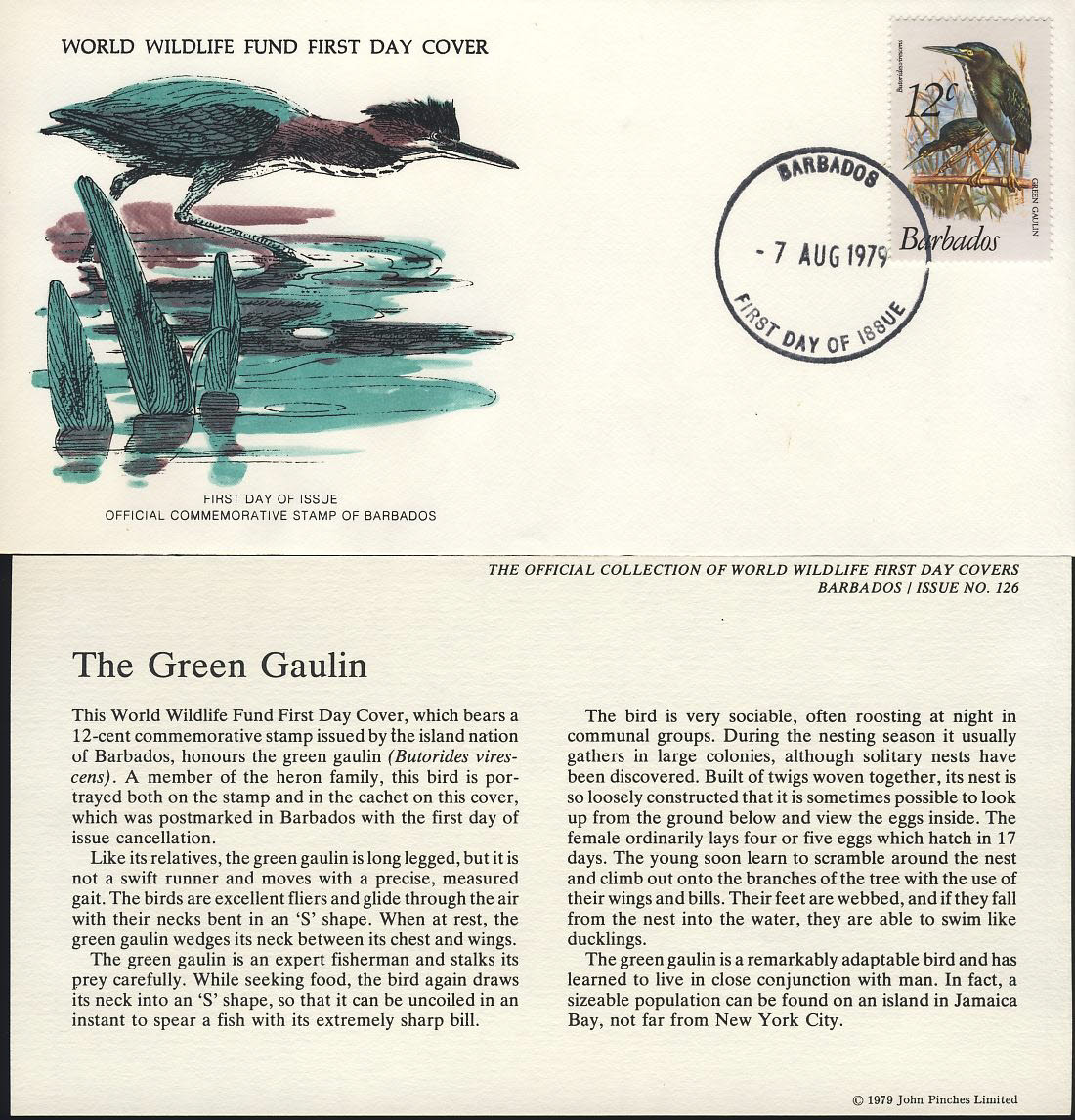 The Green Gaulin BARBADOS 1979 Stamp World Wildlife Fund First Day Cover FDC refWWF27