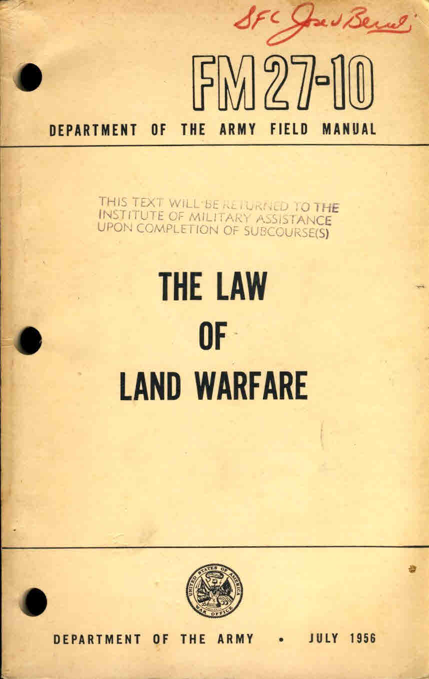 FM27-10 Army Field Manual The Law of Land Warfare 1956 vintage paperback book 236 pages ref93 A pre-owned vintage book in good condition for age. Marks on cover. Hole punched. Please see large photo and read full description.