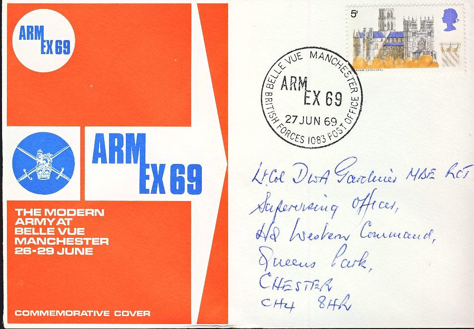 The Modern Army at Belle Vue Manchester BFPO 1083 1969 commemorative stamp cover refD305