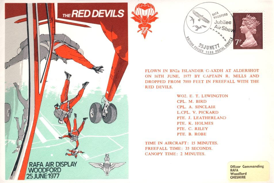 The RED DEVILS Parachute Freefall RAFA flown stamp cover Woodford BFPO 1586 refE133