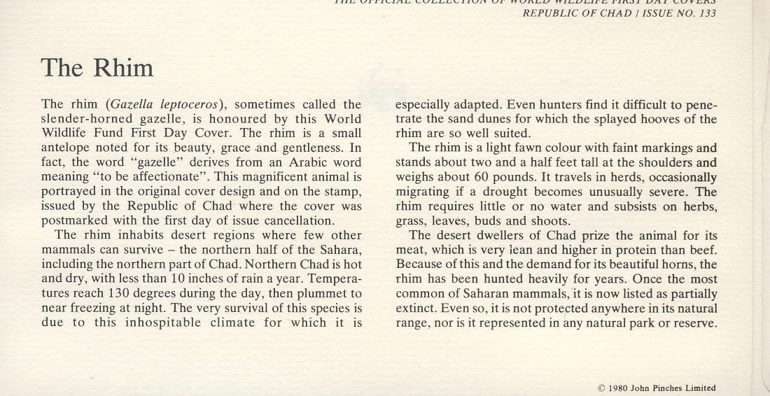 The Rhim Gazelle N’DJAMENA Republic of Chad 1979 Stamp World Wildlife Fund First Day Cover FDC refWWF19