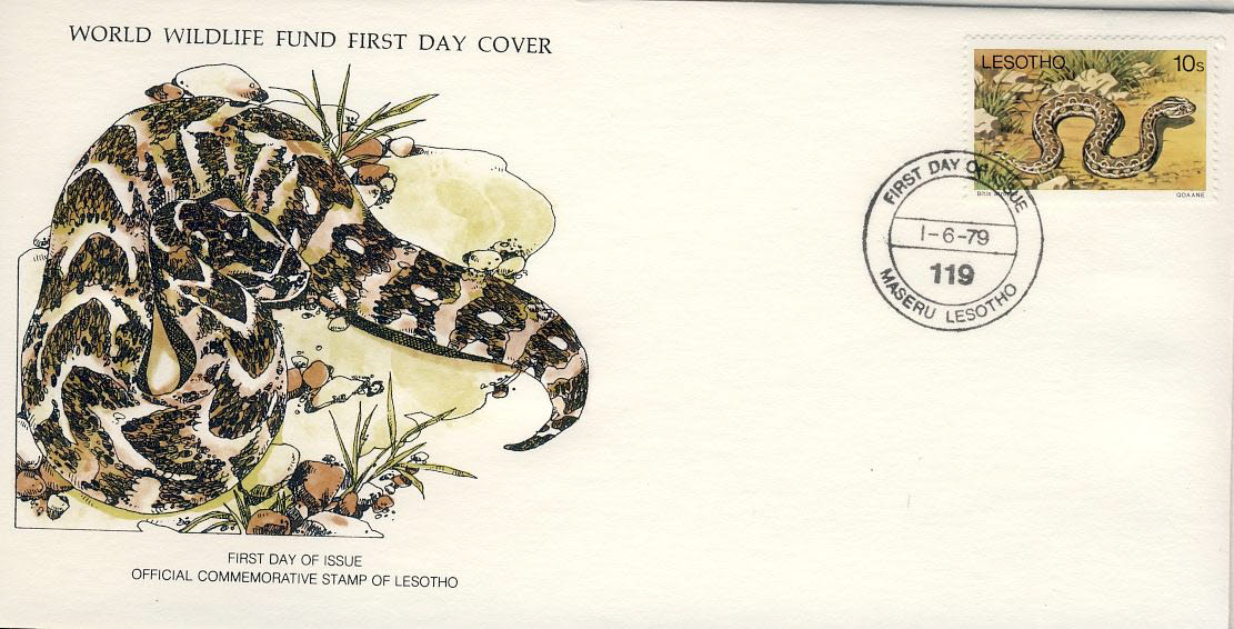 The Ringhals cobra snake Africa MASERU LESOTHO 1979 Stamp World Wildlife Fund First Day Cover FDC refWWF72