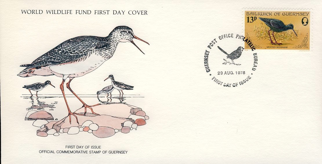 The Spotted Redshank bird GUERNSEY 1978 Stamp World Wildlife Fund First Day Cover FDC refWWF49