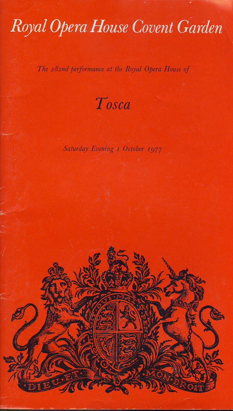 Tosca 1st October 1977 Programme Royal Opera House Covent Garden C314