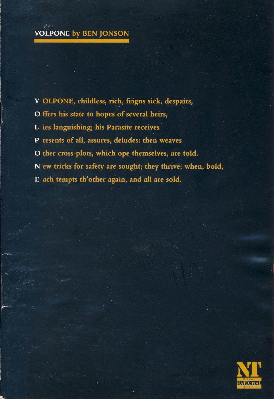 VOLPONE by Ben Jonson 1995 NT Theatre Programme refb101048