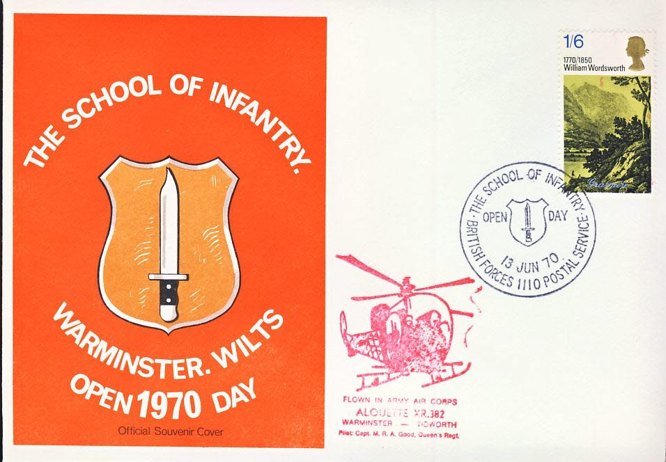 Warminster School of Infantry Open Day 1970 ALOUETTE XR.382 Army Air Corps stamp cover refD332