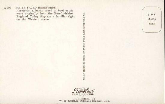 White Faced Herefords beef cattle on Colorado Springs USA POSTCARD cows