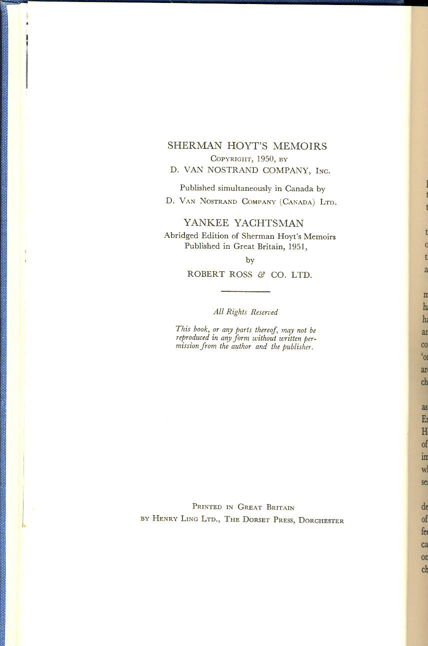 YANKEE YACHTSMAN The Memoirs of Sherman Hoyt Hardcover Book ref102755